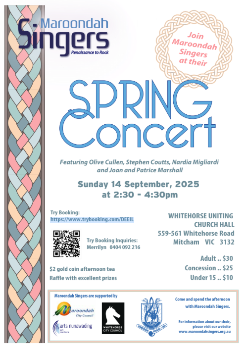 Sping Concert:Sunday 14 September, 2025 at 2:30 - 4:30pm559-561 Whitehorse Road, Mitcham VIC 3132